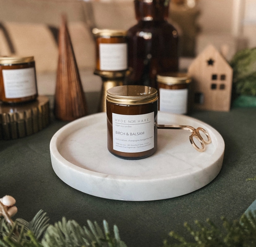 This bright, crisp candle captures the brisk air of white birch and is balanced by earthy balsam. Top notes of sparkling champagne and citrusy bergamot offer a celebratory kick as woodsy pine and moss ground this gorgeous wintery tree scent.